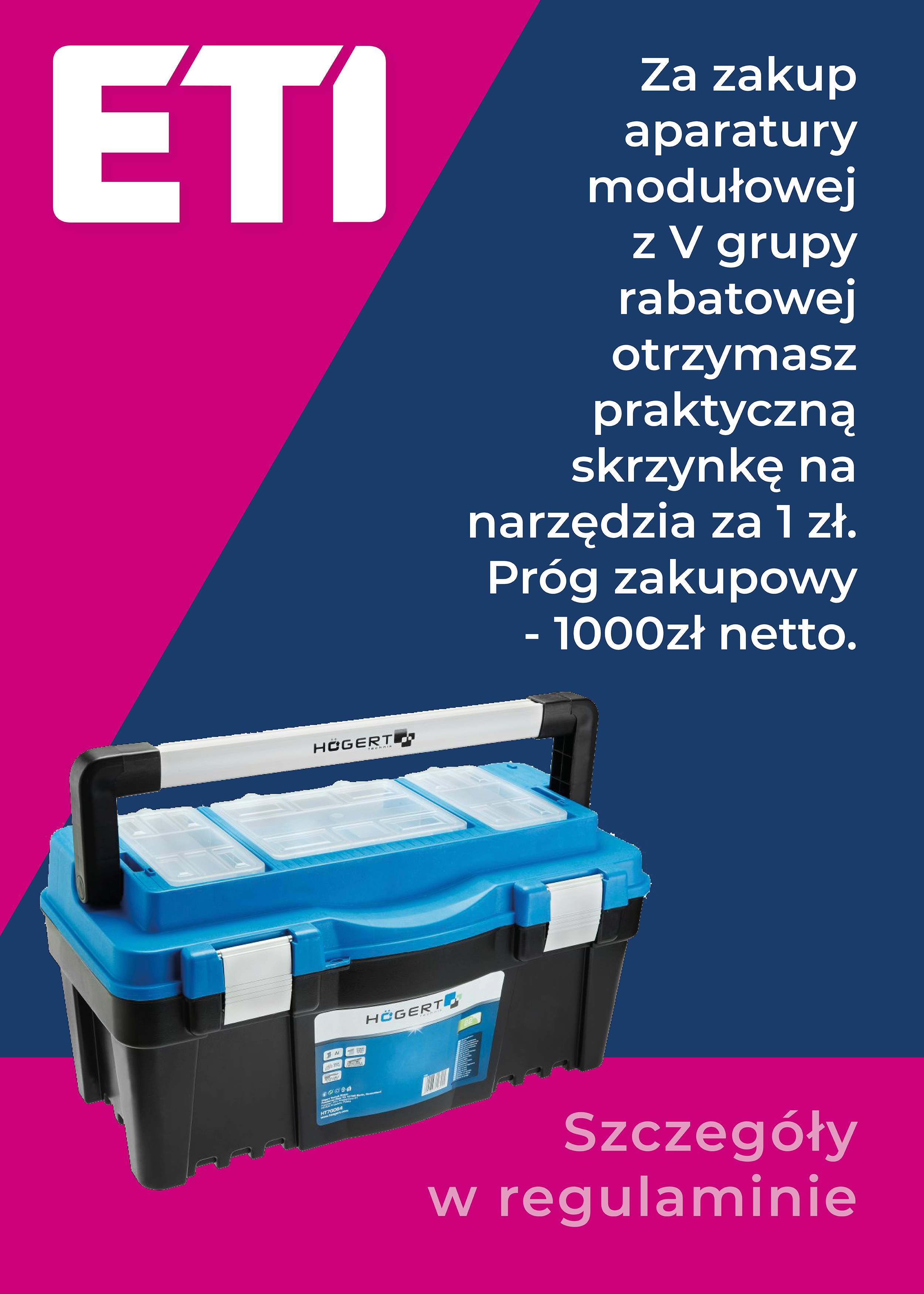 Za zakup aparatury modułowej z V grupy rabatowej otrzymasz skrzynkę na narzędzia za 1 zł brutto.