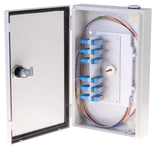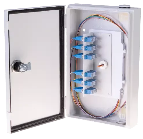 Naścienna szafka rozdzielcza BKT NSR-S IP54, 165x95x264mm (szer/gł/wys), 6xSC duplex/LC quad (na wkręty do tworzyw M2.5), szary
