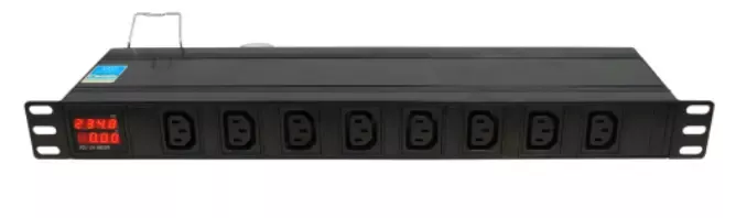Listwa zasilająca BKT DUAL 19" 1U, przód 8xIEC 320 C13 tył 6xIEC 320 C19, amperomierz/voltomierz, bezpiecznik automatyczny 16A, wtyk zasilający IEC320 C20 16A/250V (wbudowany), brak kabla zasilająceg