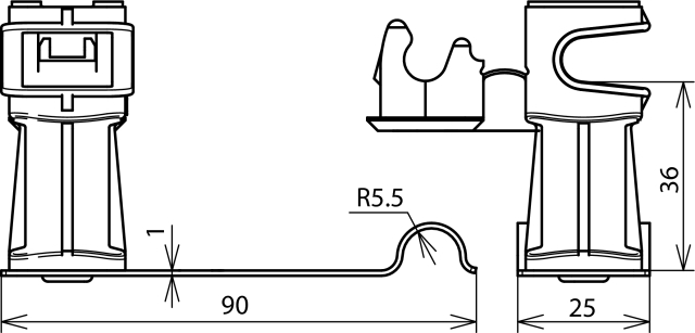 Wsporniki dachowe ze wstępnie ukształtowaną klamrą do powierzchni dachowych do mocowania zwodów i przewodów odprowadzających do powierzchni dachowych. Wykonanie do mocowania na rąbku dolnym dachówki (falcówki), ze wspornikiem DEHNsnap, wysokość 36 mm, luźne prowadzenie przewodu, z tworzywa sztucznego odpornego na oddziaływanie warunków atmosferycznych, odporne na promieniowanie UV, bezhalogenowe.