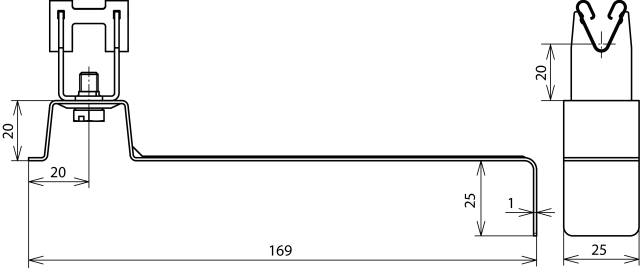 Wspornik dachowy DEHNgrip do drutu o śr. 8 mm, wys. 20 mm, z klamrą kątową o dł. 169 mm, stal nierdzewna DLH DG 8 H20 L169 WS V2A