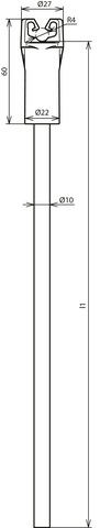 Drążek dystansujący z uchwytem przewodu do włożenia w płytkę podstawy (gniazdo wtykowe) stabilizowaną bloczkiem betonowym. Do podwyższonego prowadzenia przewodów, pozwala na zachowanie odstępu separującego zgodnie z normą DIN EN 62305-3 (VDE 0185-305-3). Z tworzywa sztucznego wzmocnionego włóknem szklanym (GRP), Ø10 mm, odporny na promieniowanie UV, kolor jasnoszary, współczynnik materiałowy km = 0,7, luźne prowadzenie przewodu.