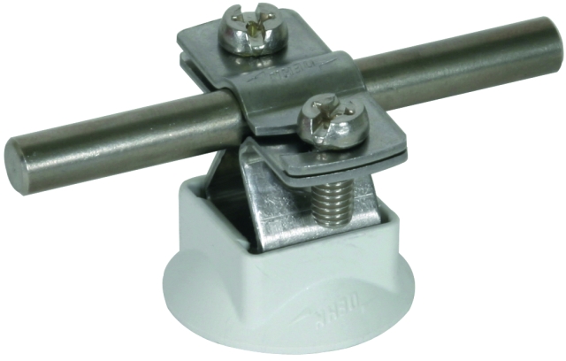 Wsporniki DEHNhold z płytką dociskową ze szczeliną, do mocowania drutów okrągłych. Do stosowania z różnymi materiałami np. aluminium, stal nierdzewna, stal ocynkowana ogniowo oraz miedź, sztywne prowadzenie przewodu. Wykonanie z gwintem żeńskim, wstępnie zmontowane z podstawką z tworzywa sztucznego.
