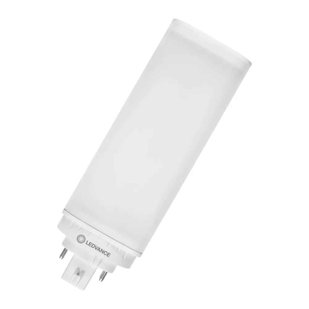 Zamiennik LED świetlówek jednotrzonkowych z 4-bolcowym trzonkiem GX24q do zasilania przez statecznik elektroniczny lub bezpośrednio z sieci. Cechy produktu: Trwałość: do 30 000 h. Trzonek typu GX24q. Obrotowy trzonek wokół osi pionowej (± 90°). Stopień ochrony: IP20. Lampy niezawierające rtęci. Zalety produktu: Łatwa instalacja. Niskie zużycie energii. Łatwa wymiana lamp dzięki kompaktowej konstrukcji. Możliwe bezpośrednie zasilanie z sieci 230 V AC. Obszary zastosowań: Oświetlenie ogólne – dla temperatur otoczenia w zakresie -20…+45 °C. Supermarkety i domy towarowe. Przejścia i korytarze. Hotele, restauracje. Porady dotyczące bezpieczeństwa: Nieodpowiednie do pracy z konwencjonalnymi statecznikami.. Zakres temperatury roboczej DULUX LED jest ograniczony. W przypadku wątpliwości co do przydatności aplikacji, przed instalacją należy zmierzyć temperaturę Tc na produkcie.. Wszystkie podłączenia elektryczne muszą być wykonane przez osobę wykwalifikowaną.. Nie dotykaj lampy gołymi palcami.. Nie wolno używać, jeśli zewnętrzne źródło światła jest uszkodzone..