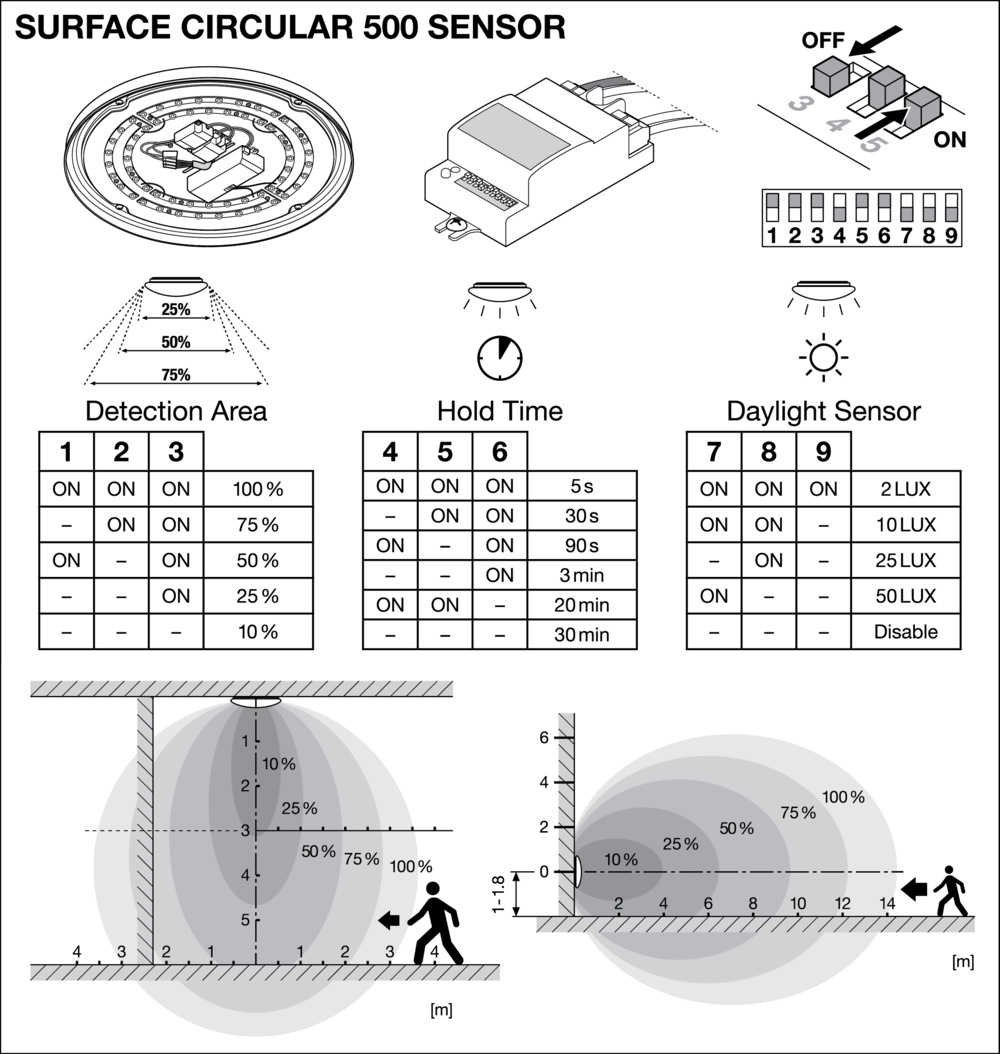luminaire ścienna i sufitowa z IP44, czujnikiem wysokiej częstotliwości i przełącznikiem mocy (PS). Cechy produktu: Czujnik o wysokiej częstotliwości do wykrywania światła i ruchu. Stopień ochrony: IP44 (montaż na suficie), IP20 (montaż na ścianie). Wydłużona trwałość (L70/B10): do 50 000 h (przy 25°C). Odporność na udar: IK03. Obudowa z metalu, klosz z PMMA. Temperatura otoczenia podczas pracy: -20…+40°C. Tylko do użytku wewnętrznego nie nadaje się do zastosowania na zewnątrz. Zalety produktu: Łatwa regulacja zakresu czujnika wykrywania światła i czasu pracy. Wysoce wszechstronny dzięki wybieranym stopniom mocy (Power Select - PS) na sterowniku. Oprawa wewnętrzna o wysokiej skuteczności świetlnej. Oszczędność energii do 55 % w porównaniu z oprawami świetlówkowymi. Łatwa i szybka instalacja. Bardzo jednorodne światło. 5-letnia gwarancja. Obszary zastosowań: Korytarze. Schody. Łazienki. Hole. Wyposażenie / Akcesoria: Dostępny zamienny opcjonalny klosz. Porady dotyczące bezpieczeństwa: Wszystkie podłączenia elektryczne muszą być wykonane przez osobę wykwalifikowaną.. Uwaga, ryzyko porażenia prądem.. Produkt w klasie ochrony I. Wszystkie przewodzące prąd, metalowe części obudowy, które mogą absorbować napięcie podczas pracy lub podczas konserwacji w przypadku awarii, muszą być stale PODŁĄCZONE do przewodu uziemiającego..