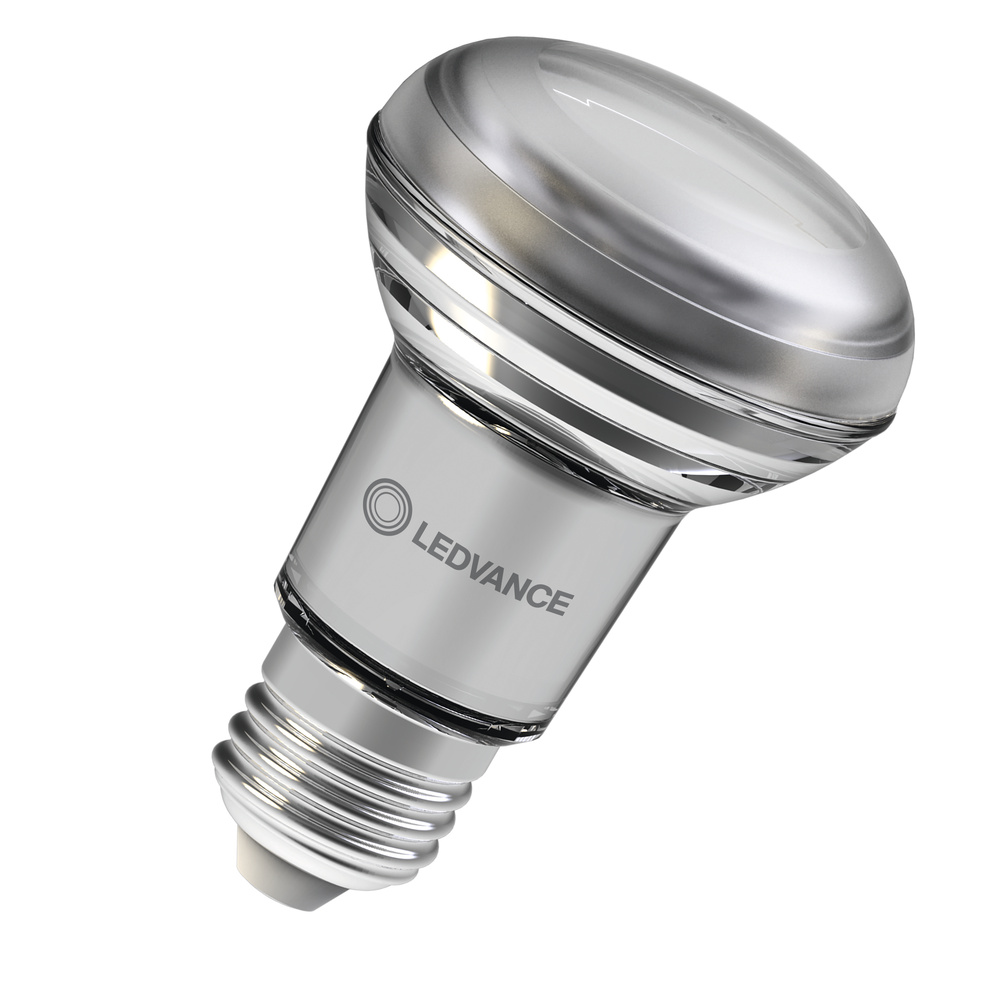 Reflektorowe lampy LED R63 z możliwością regulacji, z tradycyjnym trzonkiem. Cechy produktu: Zamiennik LED dla wysokonapięciowych żarówek halogenowych. Wysoka jedorodność barw: ≤ 5 sdcm. Ściemnialne. Trzonek: E27. Lampa wykonana ze szkła. Bardzo dobre oddawanie barw (Ra: 90). Trwałość: do 25 000 h. Zalety produktu: Szybka, prosta i bezpieczna wymiana bez zmiany okablowania. Wygląd, wymiary i strumień świetlny porównywalne z tradycyjnymi żarówkami lub żarówkami halogenowymi. Niski koszt konserwacji dzięki długiej trwałości. Bardzo wysoka kompatybilność ze ściemniaczem, patrz również www.ledvance.com/dim. Natychmiast 100 % światła, bez czasu nagrzewania. Niższe zużycie energii w porównaniu do lamp żarowych lub halogenowych. Obszary zastosowań: Sklepy i pomieszczenia wystawowe. Zastosowania domowe. Zastosowania komercyjne. Oświetlenie akcentujące. Do użytku na zewnątrz tylko w odpowiednich oprawach zewnętrznych. Porady dotyczące bezpieczeństwa: Nie dotykaj lampy, jeśli jest stłuczona.. Nie wolno używać, jeśli zewnętrzne źródło światła jest uszkodzone..