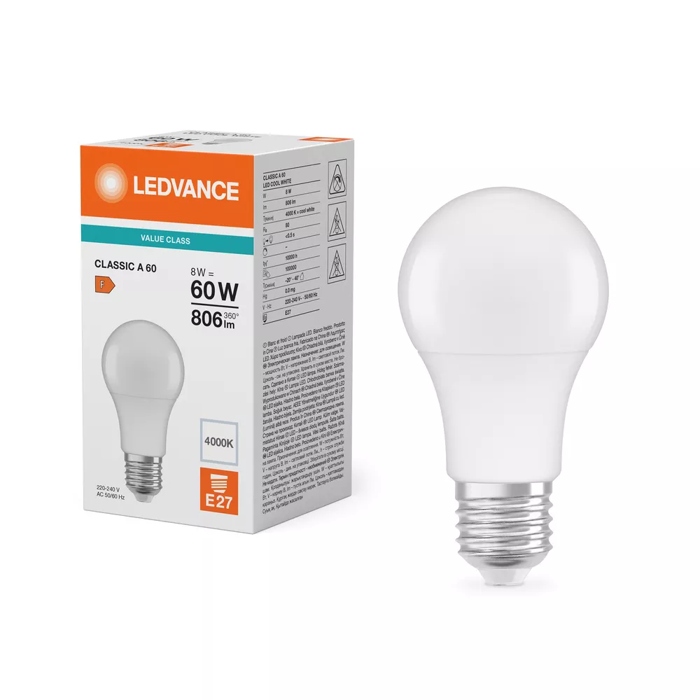 Lampa LED Value Class CLASSIC A 60 FR non-dim 8.5W/840 E27 LEDVANCE