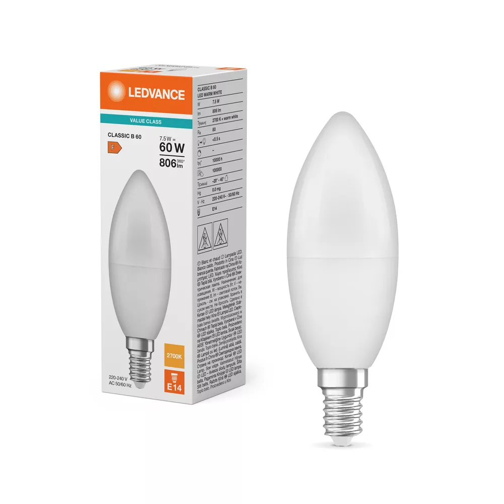 Lampa LED Value Class CLASSIC B 60 FR non-dim 7.5W/827 E14 LEDVANCE