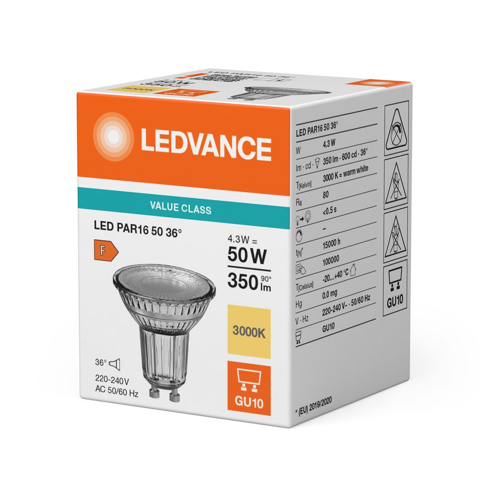 Lampa LED VALUE CLASS Spot PAR16 GL 50 non-dim 4.3W/830 GU10 LEDVANCE