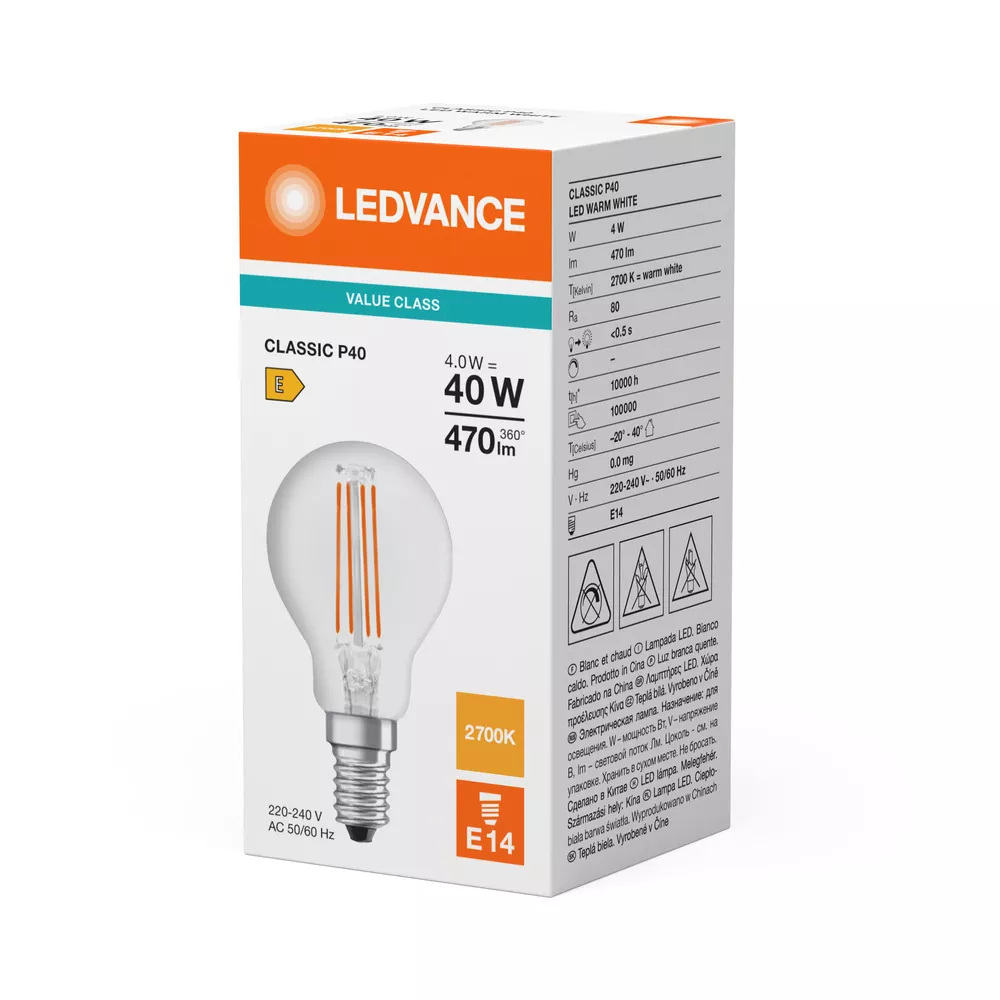 Lampa LED Value Class CLASSIC P Filament szkło przezroczyste 40 non-dim 4W/827 E14 LEDVANCE