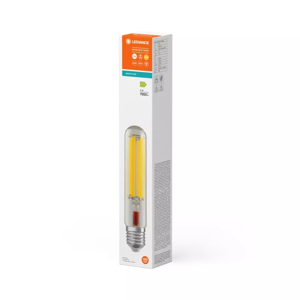 LED zamiennik lamp NAV w zastosowaniach zewnętrznych zorientowanych na design. Cechy produktu: Nadaje się do pracy z konwencjonalnym układem zasilającym lub zasilanie bezpośrednie 230 V AC. Bardzo wysoka skuteczność świetlna do 190 lm/W. Współczynnik mocy: 0,9. Stopień ochrony: IP65. Zabezpieczenie przeciwprzepięciowe: do 2 kV (L-N). Zalety produktu: Taki sam wygląd jak tradycyjne lampy NAV z cylindryczną szklaną bańką . Pełne wykorzystanie odbłyśnika w istniejącej oprawie oświetleniowej dzięki kątowi świecenia 360 stopni. Oszczędza do 78% energii, gdy jest używany jako zamiennik lamp sodowych (NAV). Natychmiast 100 % światła, bez czasu nagrzewania. Podobny rozsył strumienia świetlnego do rozsyłu strumienia świetlnego lamp sodowych NAV. Obszary zastosowań: Ulice. Oświetlenie przestrzeni. Strefy dla pieszych. Parki. Zastosowania zewnętrzne - tylko w odpowiednich oprawach. Porady dotyczące bezpieczeństwa: Nie nadaje się do pracy z zapłonnikami.. Zastosowanie kondensatora może doprowadzić do obniżenia współczynnika mocy systemu.. W przypadku montażu poziomego punkt t<sub>c</sub> lampy powinien znajdować się w górnej części lampy.. Zastosowanie w małych i wąskich oprawach z wąskimi odbłyśnikami nie jest rekomendowane. Prawidłowa praca w temperaturze otoczenia do 50 °C wewnątrz oprawy. Nie zaleca się stosowania w małych oprawach i oprawach z małymi odbłyśnikami.. Wszystkie podłączenia elektryczne muszą być wykonane przez osobę wykwalifikowaną..