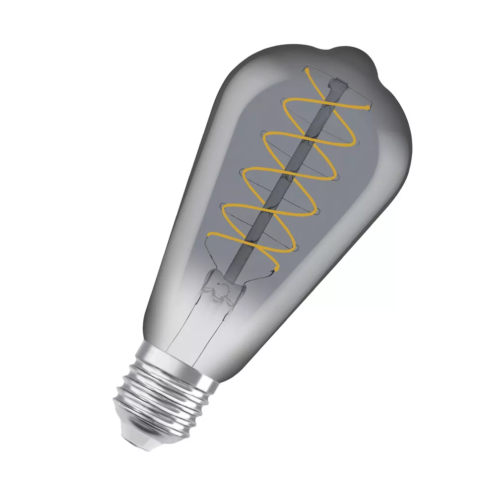 Ściemnialne lampy LED , edycja vintage, klasyczny kształt żarówki Edisona . Cechy produktu: Lampy LED dla napięcia sieciowego. Lampa wykonana ze szkła. Trwałość do 15 000 h. Kąt wiązki światła: do 360°. Ściemnialne. Dobra jakość światła, wskaźnik oddawania barw Ra: ≥ 80; stała chromatyczność. Może być używana bezpośrednio jako oprawa oświetleniowa. Cieńsze włókno, lepszy efekt dekoracyjny. Zalety produktu: Niższe zużycie energii w porównaniu do lamp żarowych lub halogenowych. Natychmiast 100 % światła, bez czasu nagrzewania. Łatwy montaż zamiast zwykłych żarówek. Lampy wykorzystujące innowacyjną technologię LED „slim-filament”.. Spiralne cienkie włókno o średnicy φ0,6mm. Prosta, długa, wąska - szerokość włókna: minimum 0,7mm. Obszary zastosowań: Doskonałe rozwiązanie do instalacji dekoracyjnych. Zastosowania domowe. Oświetlenie ogólne. Do użytku na zewnątrz tylko w odpowiednich oprawach zewnętrznych. Porady dotyczące bezpieczeństwa: Nie dotykaj lampy, jeśli jest stłuczona.. Nie wolno używać, jeśli zewnętrzne źródło światła jest uszkodzone..