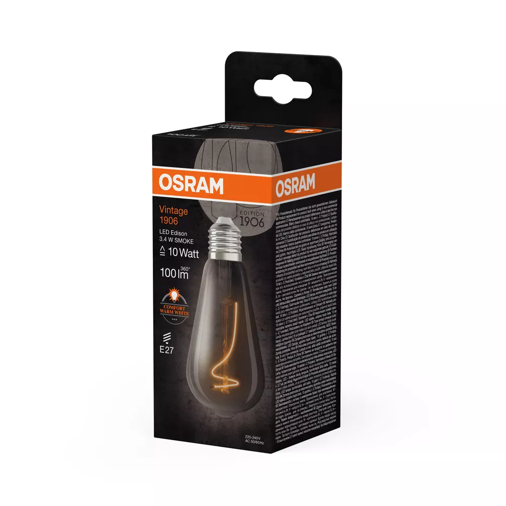 Lampy LED w wersji vintage, w kształcie żarówki klasycznej, żarówki kulistej i żarówki Edisona z technologią LED . Cechy produktu: Lampy LED dla napięcia sieciowego. Lampa wykonana ze szkła. Trwałość do 15 000 h. Kąt wiązki światła: do 360°. Dobra jakość światła, wskaźnik oddawania barw Ra: ≥ 80; stała chromatyczność. Może być używana bezpośrednio jako oprawa oświetleniowa. Cieńsze włókno, lepszy efekt dekoracyjny. Przyjemne światło: ciepłobiała barwa światła. Zalety produktu: Niższe zużycie energii w porównaniu do lamp żarowych lub halogenowych. Natychmiast 100 % światła, bez czasu nagrzewania. Łatwy montaż zamiast zwykłych żarówek. Lampy wykorzystujące innowacyjną technologię LED „slim-filament”.. Obszary zastosowań: Doskonałe rozwiązanie do instalacji dekoracyjnych. Zastosowania domowe. Oświetlenie ogólne. Eksploatacja na zewnątrz wyłącznie w oprawach zewnętrznych (co najmniej IP65). Porady dotyczące bezpieczeństwa: Nie dotykaj lampy, jeśli jest stłuczona.. Nie wolno używać, jeśli zewnętrzne źródło światła jest uszkodzone..