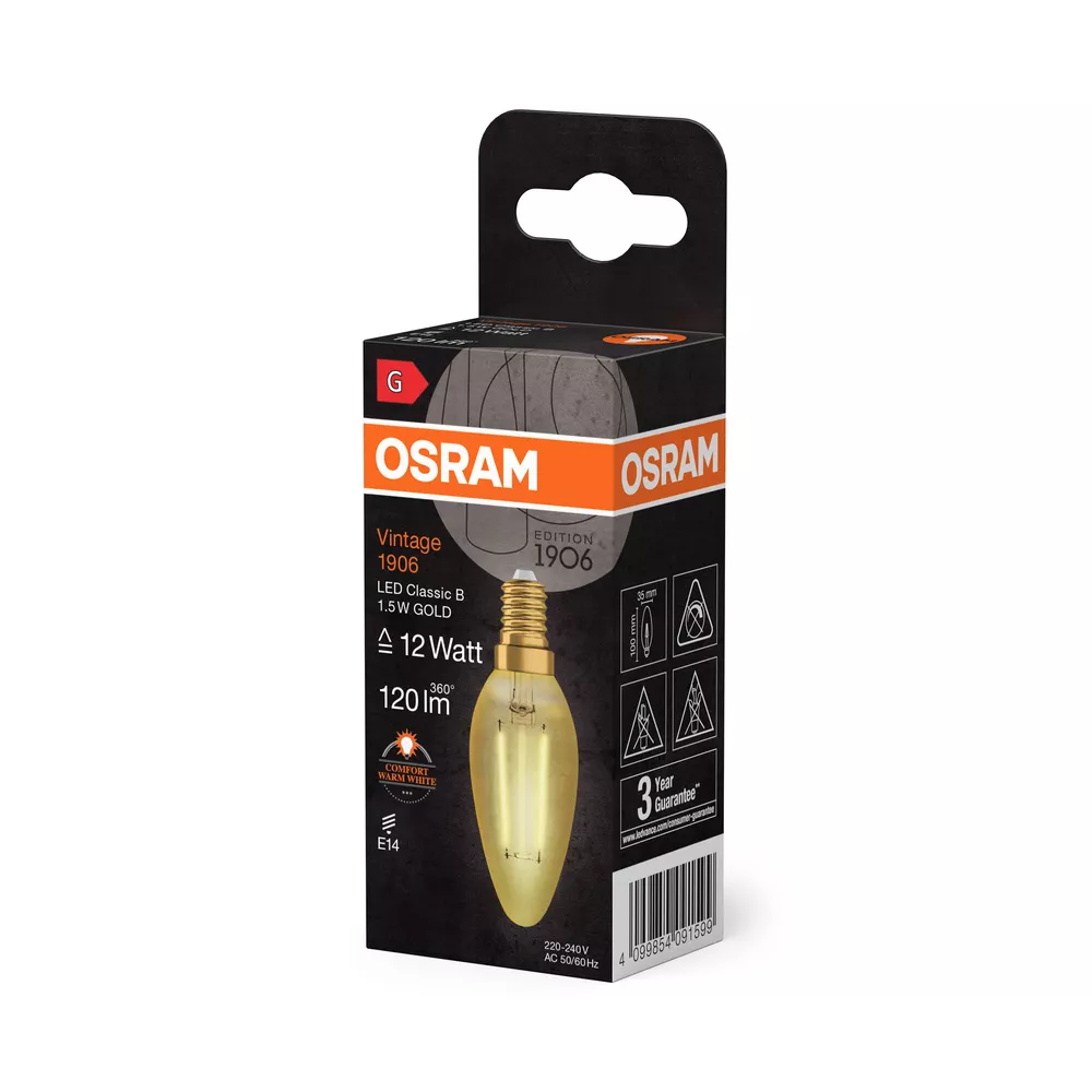 Lampy LED , edycja vintage, klasyczny kształt żarówki świecowej. Cechy produktu: Lampy LED dla napięcia sieciowego. Lampa wykonana ze szkła. Trwałość do 15 000 h. Kąt wiązki światła: do 360°. Dobra jakość światła, wskaźnik oddawania barw Ra: ≥ 80; stała chromatyczność. Zalety produktu: Niższe zużycie energii w porównaniu do lamp żarowych lub halogenowych. Natychmiast 100 % światła, bez czasu nagrzewania. Łatwy montaż zamiast zwykłych żarówek. Lampy wyposażone w innowacyjną technologię „włókien” LED. Obszary zastosowań: Doskonałe rozwiązanie do instalacji dekoracyjnych. Zastosowania domowe. Oświetlenie ogólne. Do użytku na zewnątrz tylko w odpowiednich oprawach zewnętrznych. Porady dotyczące bezpieczeństwa: Nie dotykaj lampy, jeśli jest stłuczona.. Nie wolno używać, jeśli zewnętrzne źródło światła jest uszkodzone..