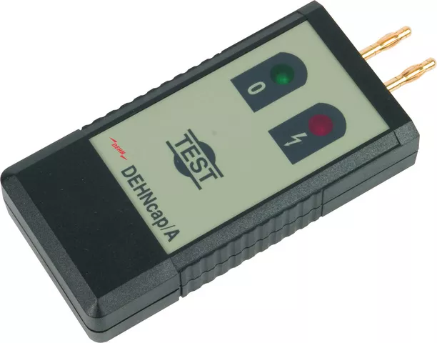 Active voltage indicator DEHNcap/A-LRM with two separate LEDs according to EN/IEC 61243-5 (DIN VDE 0682-415) for verifying safe isolation from supply voltage on all poles at the work location for switchgear installations with HR test sockets. Nominal voltages up to 45 kV / 50 Hz (three-phase system). With integrated self-testing element and battery monitoring.