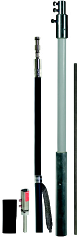 DEHNcon-H z przewodem HVI light (przewód odprowadzający o izolacji wysokonapięciowej) w rurze wsporczej, pozwalający zachować odstęp separujący od elementów przewodzących prąd, spełnia wymagania normy DIN EN 62305-3 (VDE 0185-305-3). Zapobiega niebezpiecznym przebiciom między częściami zewnętrznej instalacji odgromowej a wewnętrznymi częściami przewodzącymi (instalacja elektryczna, rurociągi itp.). Aby uniknąć wyładowań ślizgowych, przewód HVI posiada specjalny płaszcz zewnętrzny, który umożliwia odprowadzanie wysokich impulsowych napięć piorunowych względem potencjału odniesienia. System DEHNcon-H z przewodem HVI light (szary), z końcówką przyłączeniową wewnątrz w rurze wsporczej (długość 2640 mm), z iglicą odgromową (Ø10 mm, długość 1000 mm) i z elementem uziemiającym. Ekwiwalentny odstęp separujący s ≤ 45 cm (w powietrzu), s ≤ 90 cm (materiał stały).