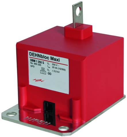 Skoordynowany jednobiegunowy ogranicznik przepięć na bazie iskiernika DEHNbloc Maxi S (typ 1 zgodnie z normą PN-EN 61643-11) z wbudowanym bezpiecznikiem do montażu na szynie przemysłowej. Wysoka zdolność ograniczania i gaszenia prądów następczych dzięki technologii RADAX Flow. Do ochrony instalacji niskiego napięcia przed przepięciami, również przy bezpośrednich trafieniach piorunów. Do stosowania zgodnie ze Strefową Koncepcją Ochrony Odgromowej jako przejście pomiędzy strefami 0A – 1.