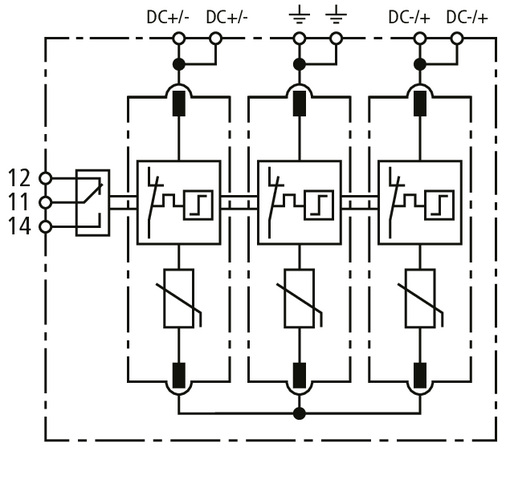 Wielobiegunowy ogranicznik przepięć DEHNguard MP YPV typu 2 zgodny z EN 61643-31, składający się z podstawy i wymiennych modułów ochronnych, z podwójnym zaciskiem przyłączeniowym w technice wtykowej („push-in”) do okablowania rozgałęzionego i przelotowego. Wysoka niezawodność dzięki urządzeniu kontrolno-odłączającemu w technologii ”Thermo Dynamik Control”. Do ochrony niskonapięciowych instalacji odbiorników przed przepięciami. Do użytku zgodnie z normą IEC 60364-7-712:2002-05 ("Wymagania dotyczące specjalnych instalacji lub lokalizacji. Fotowoltaiczne (PV) układy zasilania").