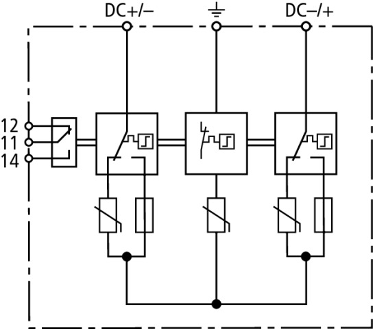 Wielobiegunowy ogranicznik przepięć DEHNguard YPV SCI typu 2 zgodny z EN 61643-31 z trzystopniowym wyłącznikiem DC. Kombinowane urządzenie odłączająco-zwierające z niezawodną separacją elektryczną w module ochronnym. Do ochrony niskonapięciowych instalacji odbiorników przed przepięciami. Do użytku zgodnie z normą IEC 60364-7-712:2002-05 ("Wymagania dotyczące specjalnych instalacji lub lokalizacji. Fotowoltaiczne (PV) układy zasilania").