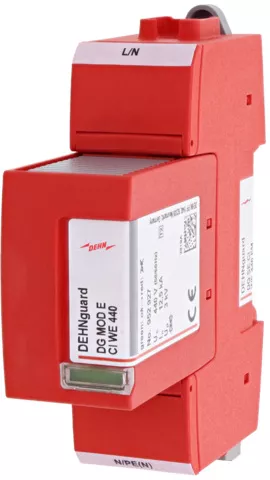 Jednobiegunowy ogranicznik przepięć DEHNguard SE CI typu 2 zgodny z EN 61643-11, z wbudowanym bezpiecznikiem dodatkowym, składający się z podstawy i wymiennego modułu ochronnego. Wysoka niezawodność dzięki urządzeniu kontrolno-odłączającemu w technologii ”Thermo Dynamik Control”. Do ochrony instalacji niskiego napięcia przed przepięciami. Do stosowania zgodnie ze strefową koncepcją ochrony odgromowej jako przejście pomiędzy strefami 0B – 1 i wyżej.