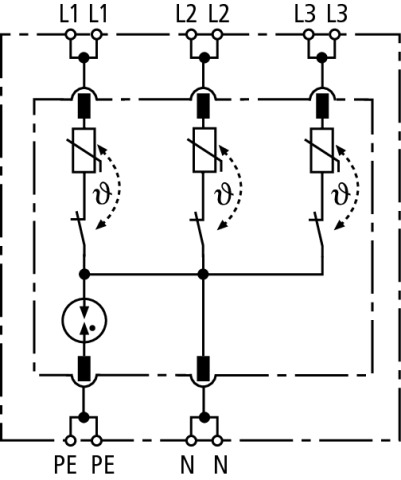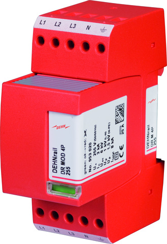 Czterobiegunowy ogranicznik przepięć DEHNrail modular, typ 3 zgodny z EN 61643-11, składający się z podstawy i wymiennego modułu ochronnego. Wysoka zdolność odprowadzania prądów udarowych dzięki zastosowaniu skutecznej kombinacji warystorów z tlenku cynku i iskierników. Do ochrony obwodu zasilania urządzeń elektroniki przemysłowej przed przepięciami przejściowymi w szafach rozdzielczych. Do stosowania zgodnie ze strefową koncepcją ochrony odgromowej jako przejście pomiędzy strefami 1 – 2 i wyżej.