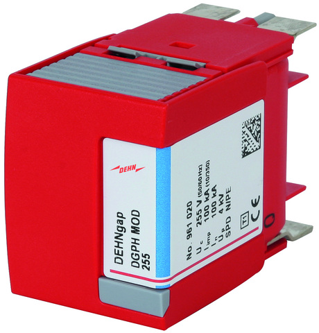 Iskiernikowy moduł ochronny do modułowych ograniczników przepięć DEHNgap (typ 1 zgodnie z normą PN-EN 61643-11).