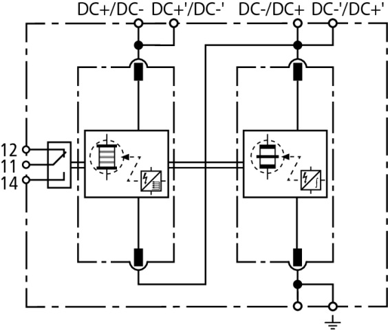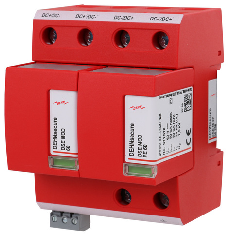 Dwubiegunowy, modułowy skoordynowany ogranicznik prądu piorunowego DEHNsecure, klasyfikacja typ 1 zgodnie z normą EN 61643-11 na bazie iskierników. Zaprojektowany specjalnie do stosowania w obwodach stałoprądowych (DC) technika iskiernikowa. Do ochrony instalacji stałoprądowych przed przepięciami, również przy bezpośrednich wyładowaniach atmosferycznych. Do stosowania zgodnie ze strefową koncepcją ochrony odgromowej jako przejście pomiędzy strefami 0A – 1.