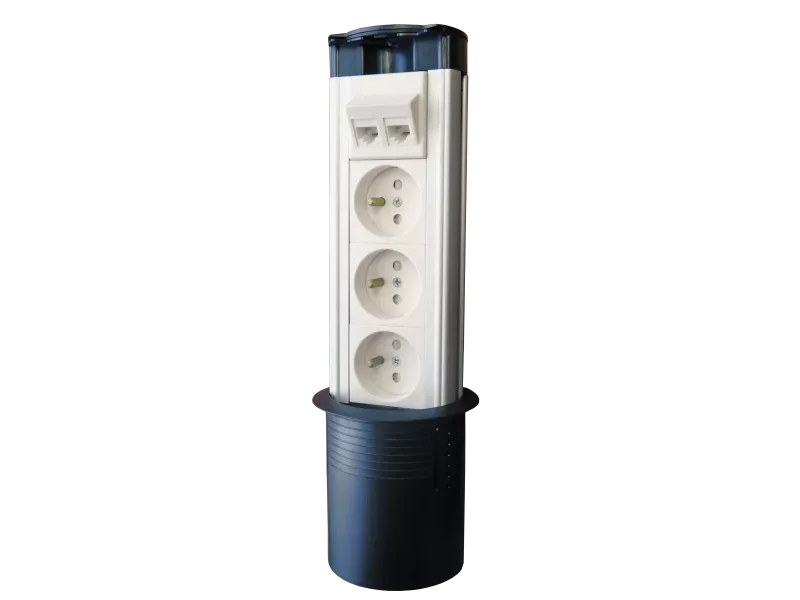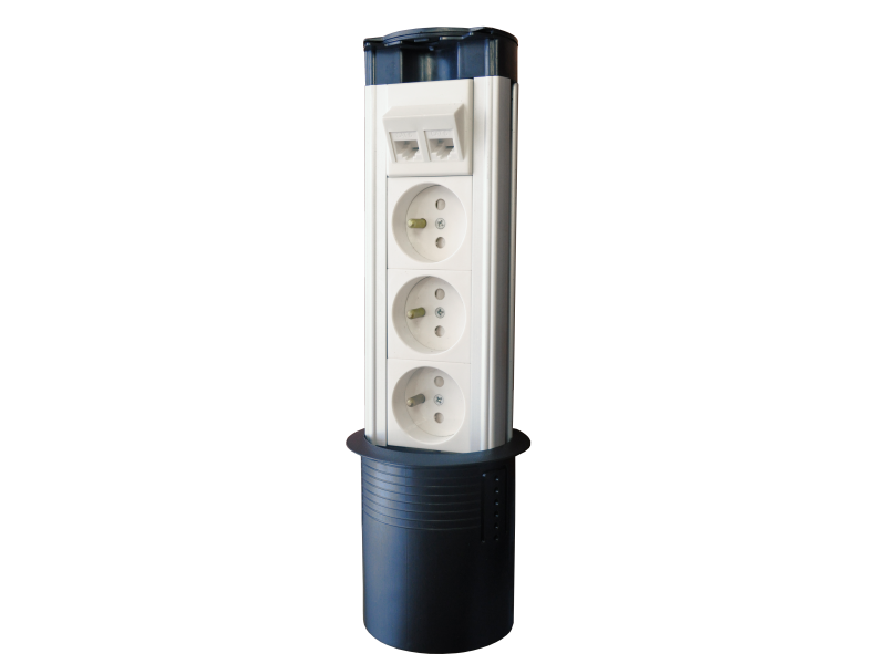 L- Gniazdo meblowe do blatu, wpuszczana kolumna zasilająca 3 gniazda elektryczne + 2 gniazda komputerowe ALANTEC