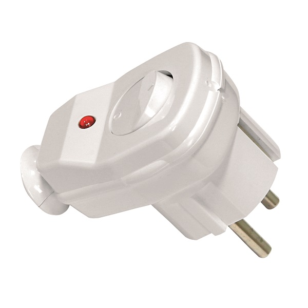 Wtyczka kątowa z tworzywa z wyłącznikiem i diodą 16A 2P+Z 230V biała