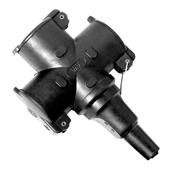 Gniazdo przenośne potrójne gumowe 16A 2P+Z 230V IP44 z bolcem czarne