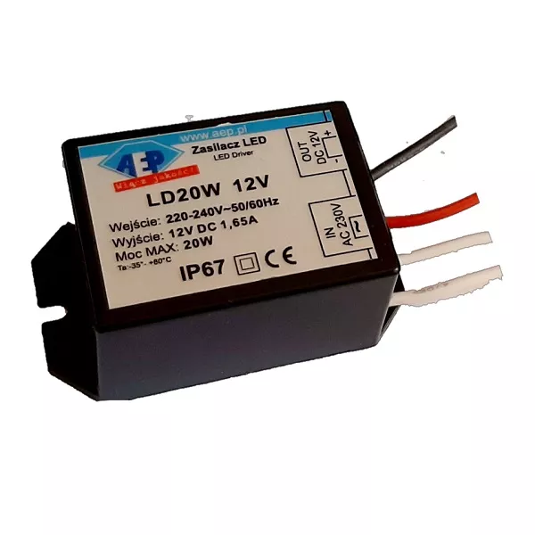 Transformator LED 20W DC 12V IP 20 91*40*20 mm