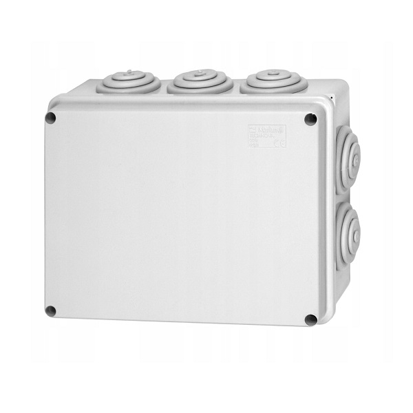 Puszka instalacyjna z dławikami, śruby metalowe, IP65, wym.: 240*190*90 mm