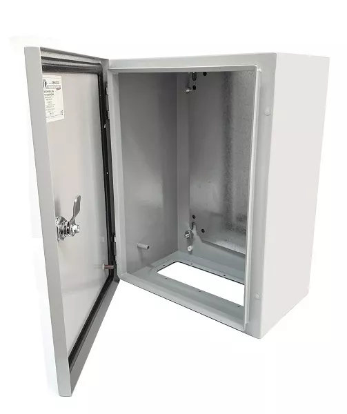 OBM303015 Obudowa metalowa nadtynkowa 300*300*150 mm IP66 wyposażona w płytę montażową RAL7035