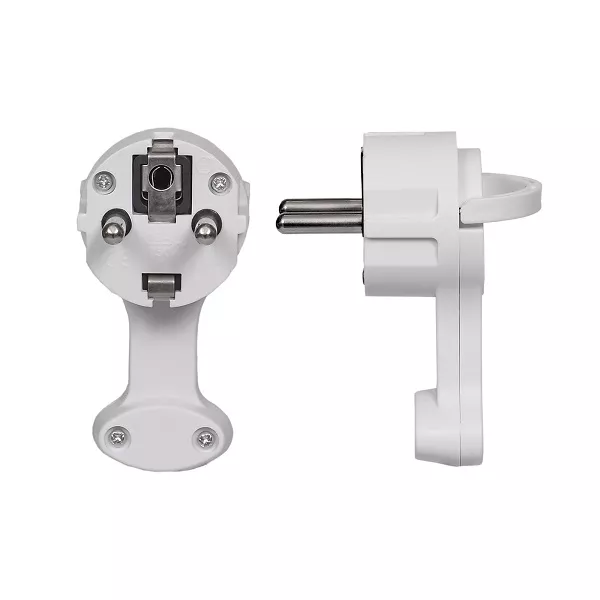 Wtyczka kątowa płaska z uchwytem 16A 2P+Z 230V IP44 Uni-Schuko biała