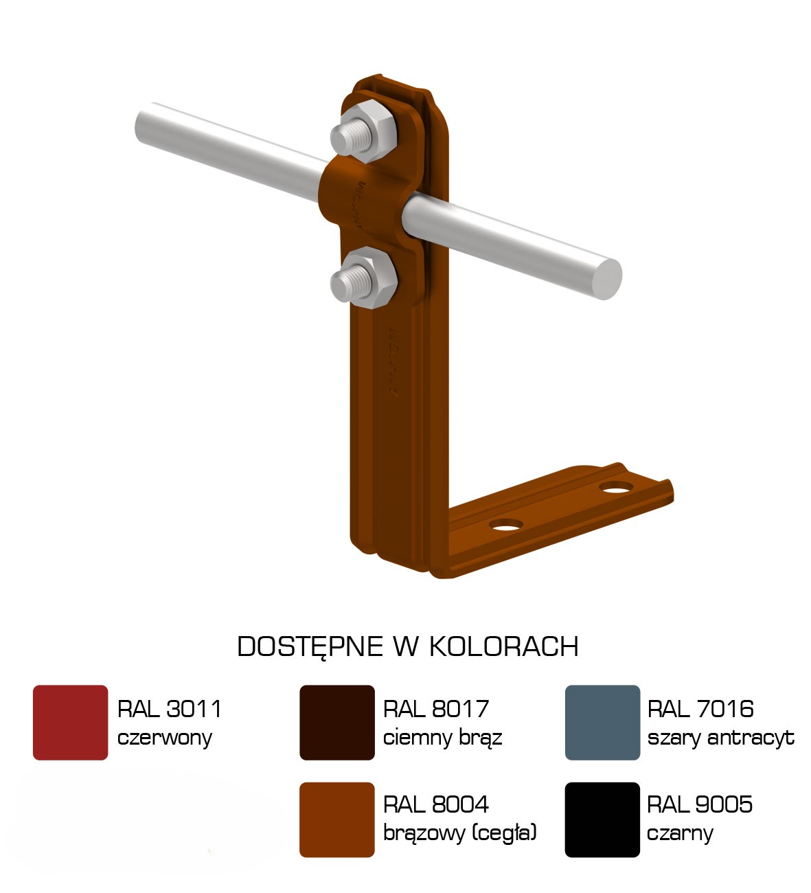 kątowy prosty Uchwyty do prowadzenia przewodu odgromowego na dachach obiektów krytych gontem, papą, blachą.