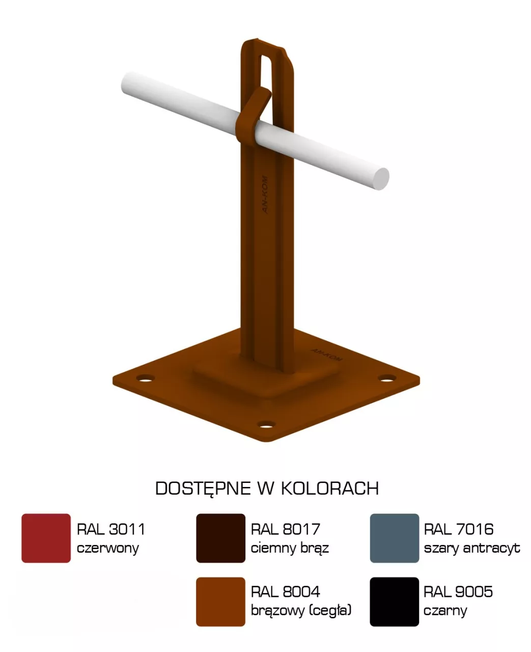na płytce stalowej Do montażu przewodu odgromowego na dachach, attykach, nadbudówkach pokrytych papą, blachą.