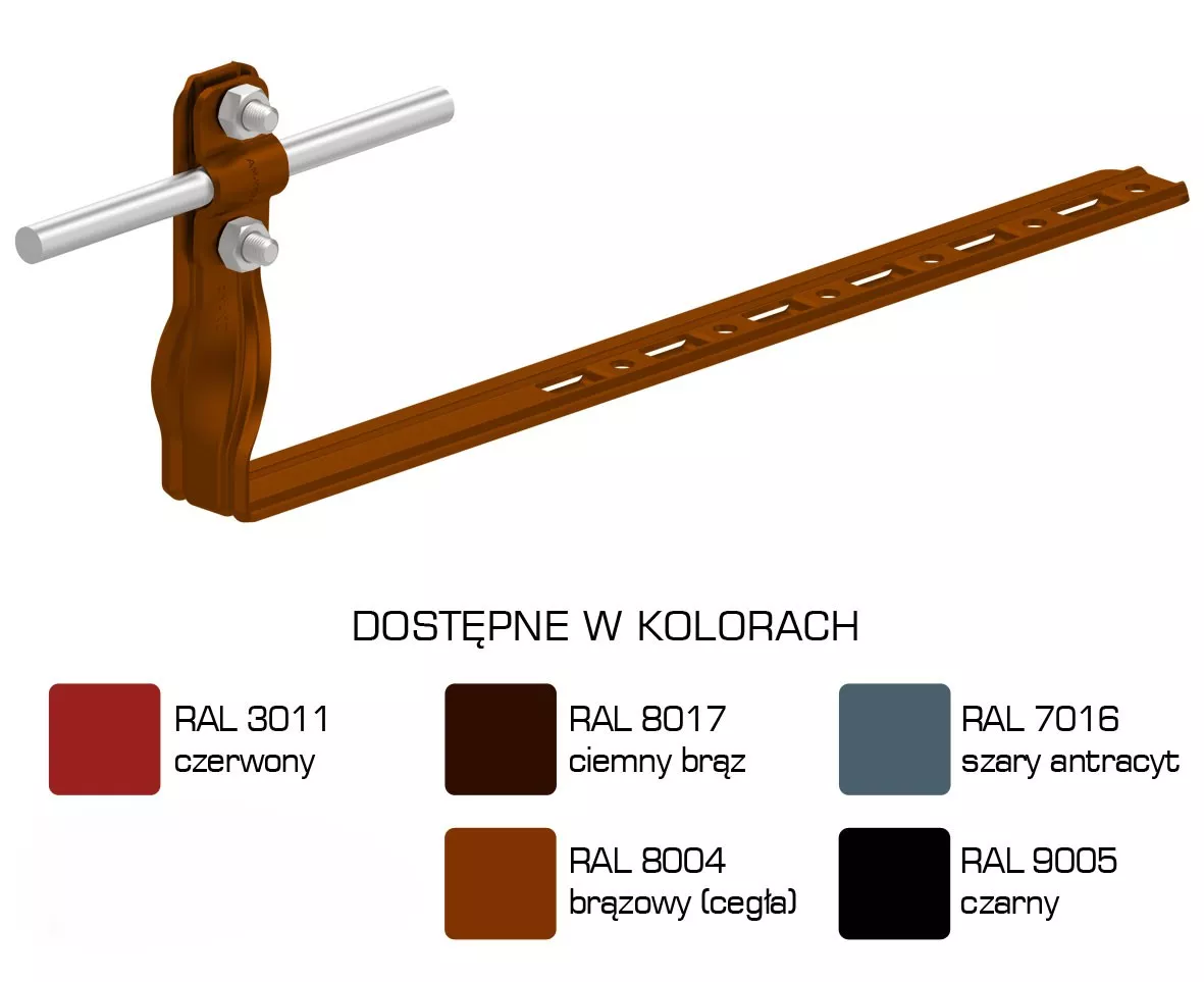 regulowany skręcony Uchwyt dachówkowy - regulowany skręcony do budowy zwodów i przewodów odgromowych na dachu wzdłuż dachówki. Montaż uchwytu odbywa się poprzez odgięcie ząbka i wsunięcie uchwytu pomiędzy dachówki lub przykręcenie wkrętami do łaty przez otwory montażowe.