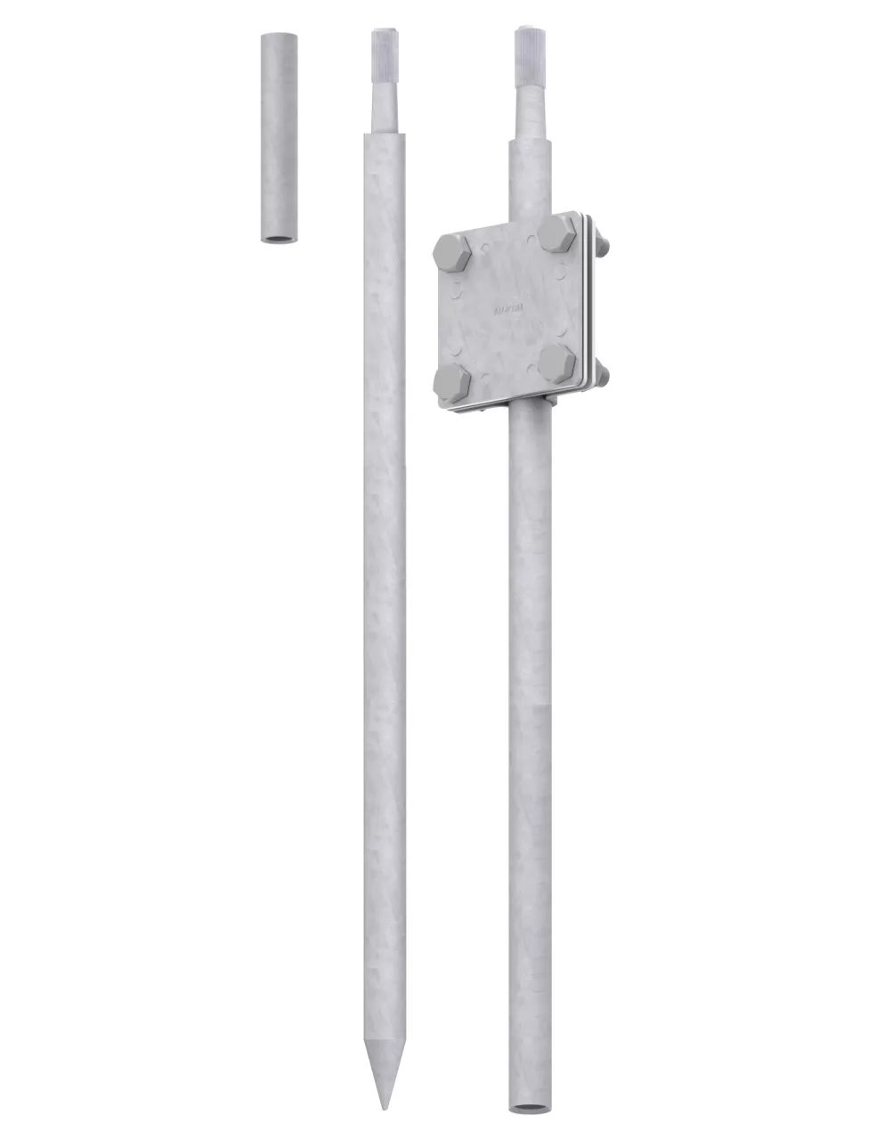 Uziom składany, kompletny o długości 3m. Składa sie z dwóch prętów (podstawa, przedłużka), złącza uziomowego do połączenia z bednarką oraz z pobijaka do pogrążania uziomu w ziemi.