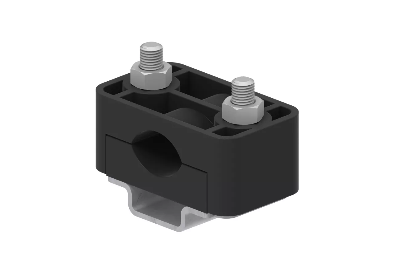 Uchwyt PW w tworzywie do prowadzenia przewodu w izolacji wysokonapięciowej po płaskich podłożach np. ścianie. Tworzywo odporne na promieniowanie UV.