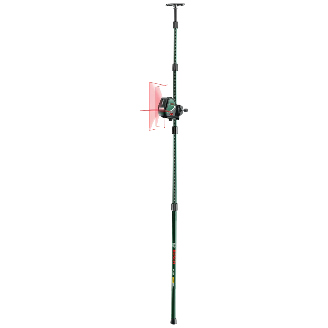 Laser krzyżowy, w zestawie materiałowa torba,kolumna teleskopowa TP 320 i 3 baterie 1,5 V LR6 (AA). Zasięg pracy, linia laserowa 10 m. Zasięg pracy, punkt laserowy 10 m. Dioda lasera, linia laserowa 650 nm. Dioda lasera, punkt laserowy 635 nm. Zakres niwelacji ± 4 . Precyzyjne wyświetlanie linii skrzyżowanej z dodatkowymi punktami w pionie skierowanymi w górę i w dół oraz z dodatkową linią pionową pod kątem 90° oraz punktem w pionie. Funkcja automatycznej niwelacji punktów i linii laserowych.