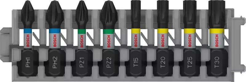 Zestaw PRO Impact Mixed, PH1; PH2; PZ1; PZ2; T15; T20; T25; T30, 25 mm, 8 szt.