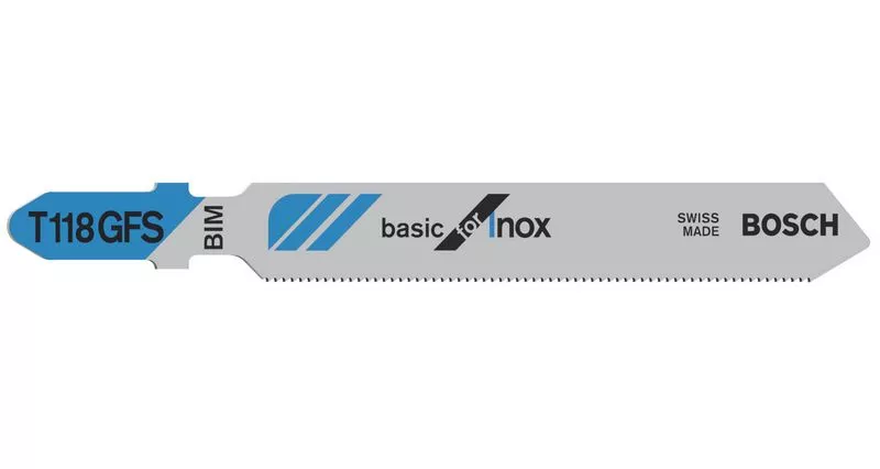 Do cięcia stali nierdzewnej - Brzeszczot T 118 GFS Basic for Stainless Steel umożliwia proste cięcia w metalu. Jego faliste, frezowane uzębienie jest przeznaczone do cięcia stali nierdzewnej. Jego wykonane z bimetalu i z hartowanej, specjalnie uformowanej stali szybkotnącej uzębienie ostrza, spojone z grzbietem z bardzo sprężystej stali wysokowęglowej, zapewniają odpowiednią twardość i giętkość wymaganą do cięcia cienkich, pełnych i perforowanych arkuszy stali nierdzewnej. Ponadto bardzo drobna podziałka uzębienia (0,8 mm) jest odpowiednia do cięcia bardzo cienkich arkuszy stali nierdzewnej o grubości 0,5–1,5 mm. Do stosowania z wyrzynarkami z uchwytem T. Pasuje do wszystkich wyrzynarek z uchwytem typuT.