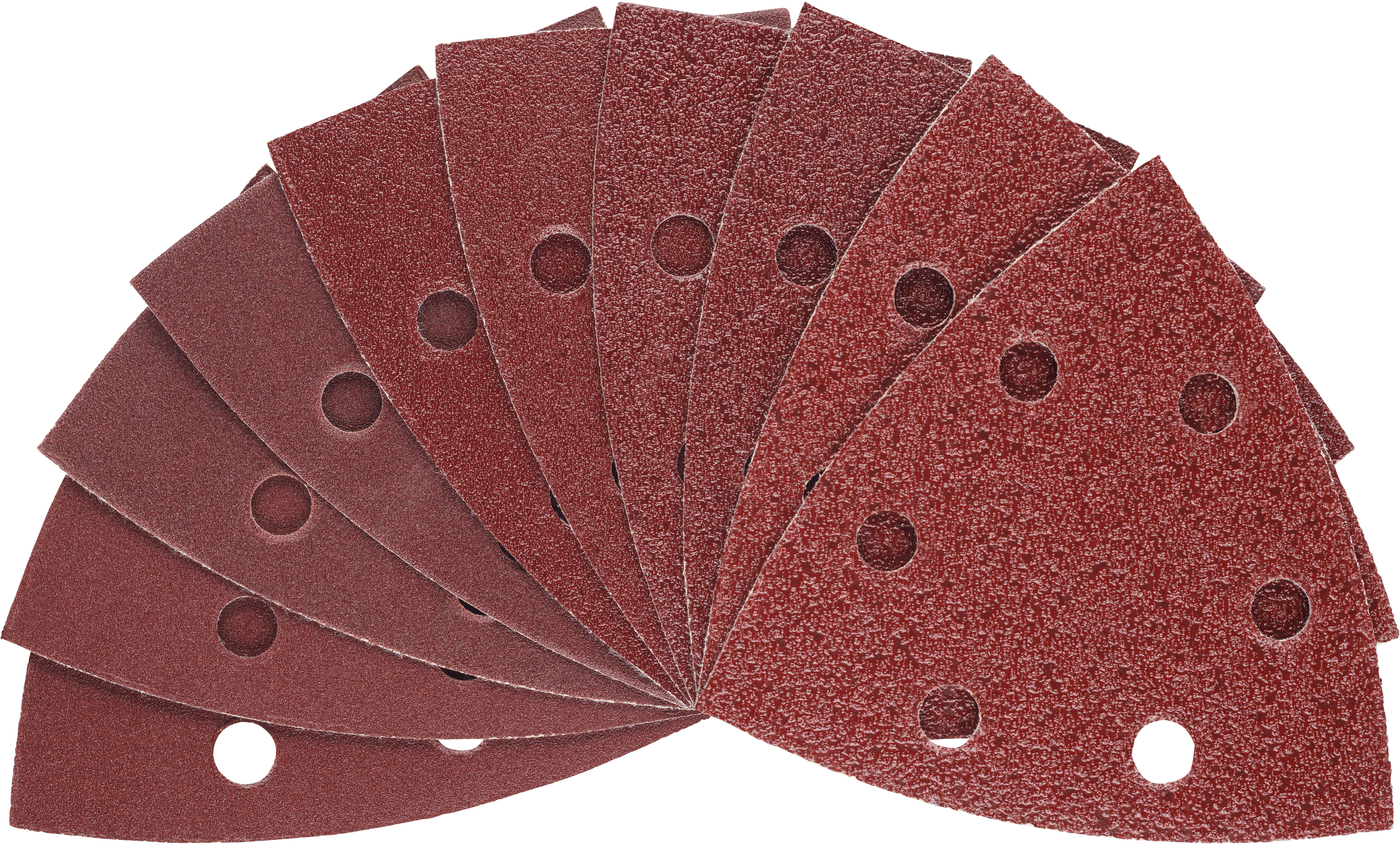 With hook-and-loop-type fastening for rapid sheet changes. Grits 60 coarse for removal work, G80 medium for preparing work, G120/180/240 fine for finishing work.