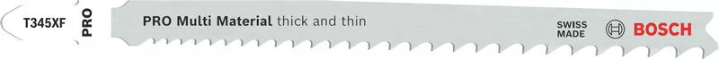 Grube i cienkie materiały - Brzeszczot T 345 XF Progressor for Wood and Metal umożliwia szybkie proste cięcie cienkiego i grubego drewna z metalem. Geometria zębów ze stopniowo rosnącą podziałką uzębienia pozwala na używanie tego brzeszczotu dla szerokiego zakresu gęstości materiałów. Ponadto frezowane, rozwarte zęby pozwalają na szybkie cięcie. Wykonane z bimetalu i hartowanej stali szybkotnącej (HSS) uzębienie jest spojone z grzbietem z bardzo sprężystej stali wysokowęglowej (HCS), co umożliwia cięcie elementów stalowych o standardowej wytrzymałości znajdujących się w drewnie. Duża, stopniowana podziałka uzębienia (2,4–5 mm) i długie ostrze (132 mm) umożliwiają cięcie różnego rodzaju elementów metalowych w drewnie o grubości do 65 mm, np. miękkich gwoździ, miękkich śrub i klamer. Do stosowania z wyrzynarkami z uchwytem T. Pasuje do wszystkich wyrzynarek z uchwytem typuT.