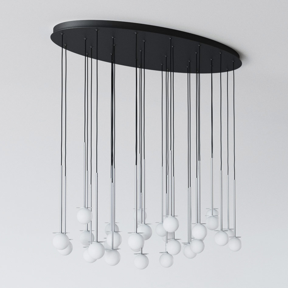 COTTON PANEL HF46 elipsa 1500x750, fi100 wisząca max.30x1,9W, G9, 230V, przewód czarny, kolor srebra (gładki mat)