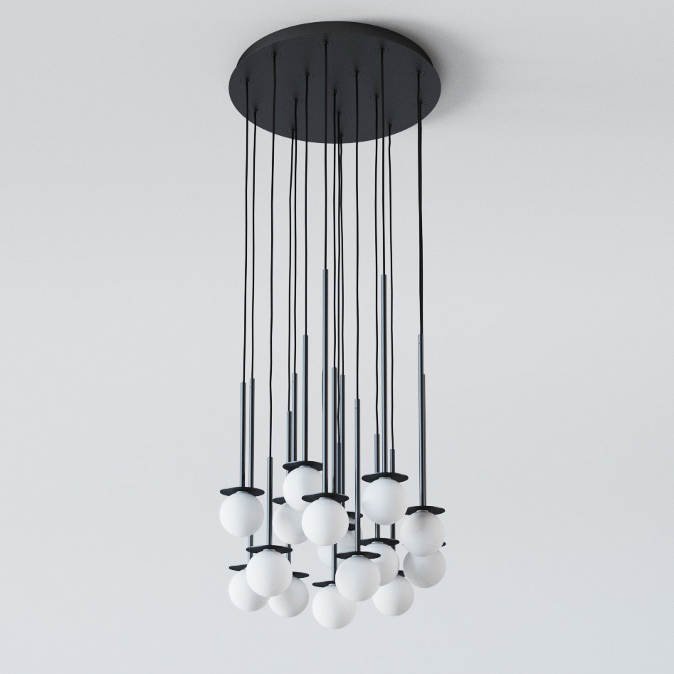 COTTON PANEL HF4, fi100 wisząca LED 16x2,7W/298lm/3000K, 230V, przewód czarny, czarny głęboki (mat struktura) RAL 9005