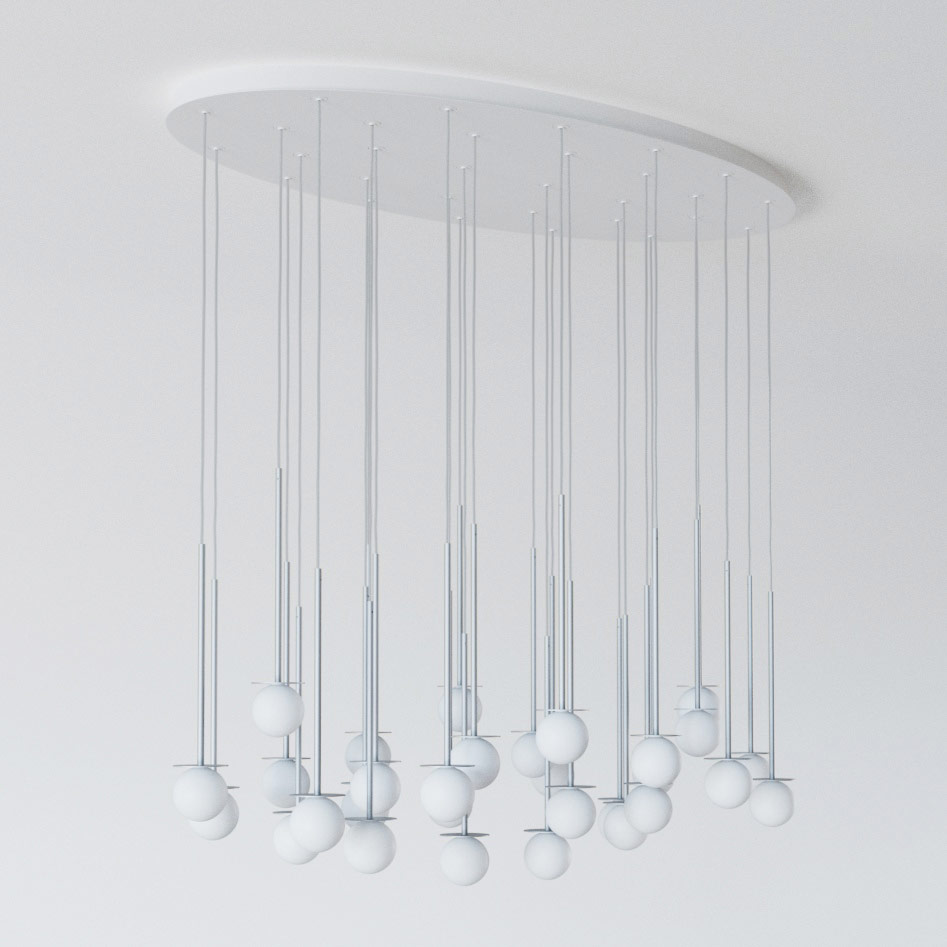 COTTON PANEL HF46 elipsa 1500x750, fi100 wisząca LED 30x2,7W/298lm/3000K, 230V, przewód transparentny, srebrny aluminiowy (mat struktura) RAL 9006