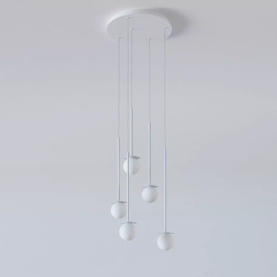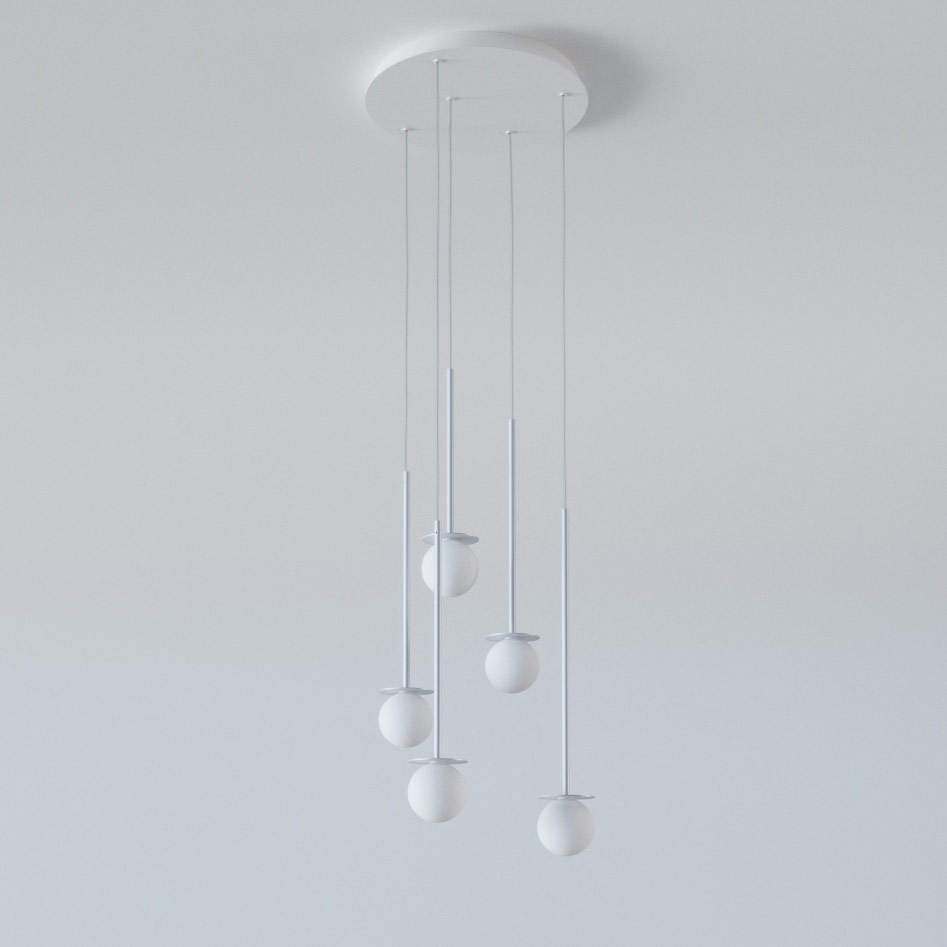 COTTON PANEL RH19, fi100 wisząca LED 5x2,7W/298lm/3000K, 230V, przewód transparentny, srebrny aluminiowy (mat struktura) RAL 9006