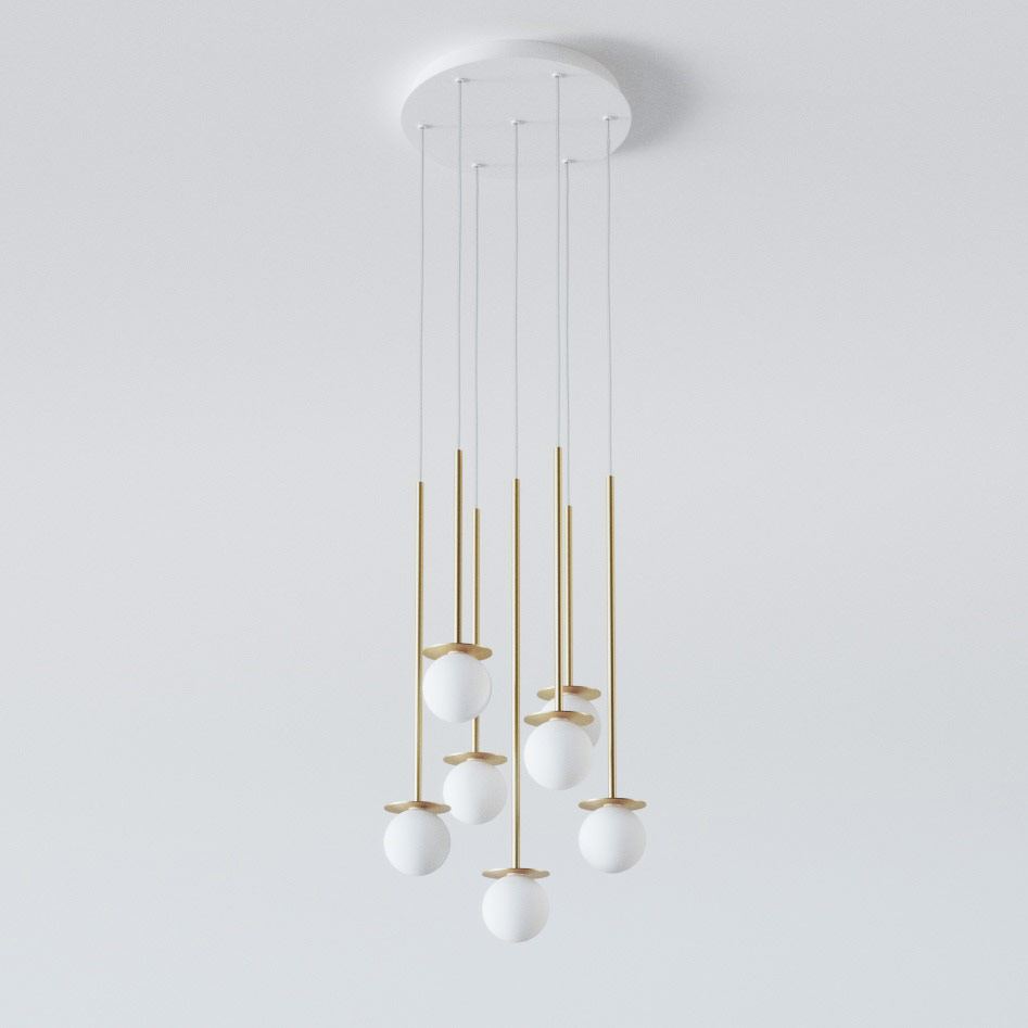 COTTON PANEL RH25, fi100 wisząca LED 7x2,7W/298lm/3000K, 230V, przewód transparentny, kolor złota (gładki mat)