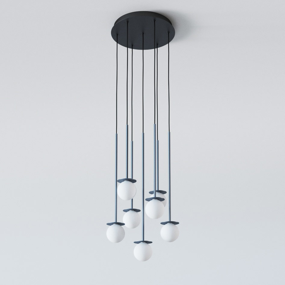 COTTON PANEL RH25, fi100 wisząca LED 7x2,7W/298lm/3000K, 230V, przewód czarny, szary grafitowy (mat) RAL 7024